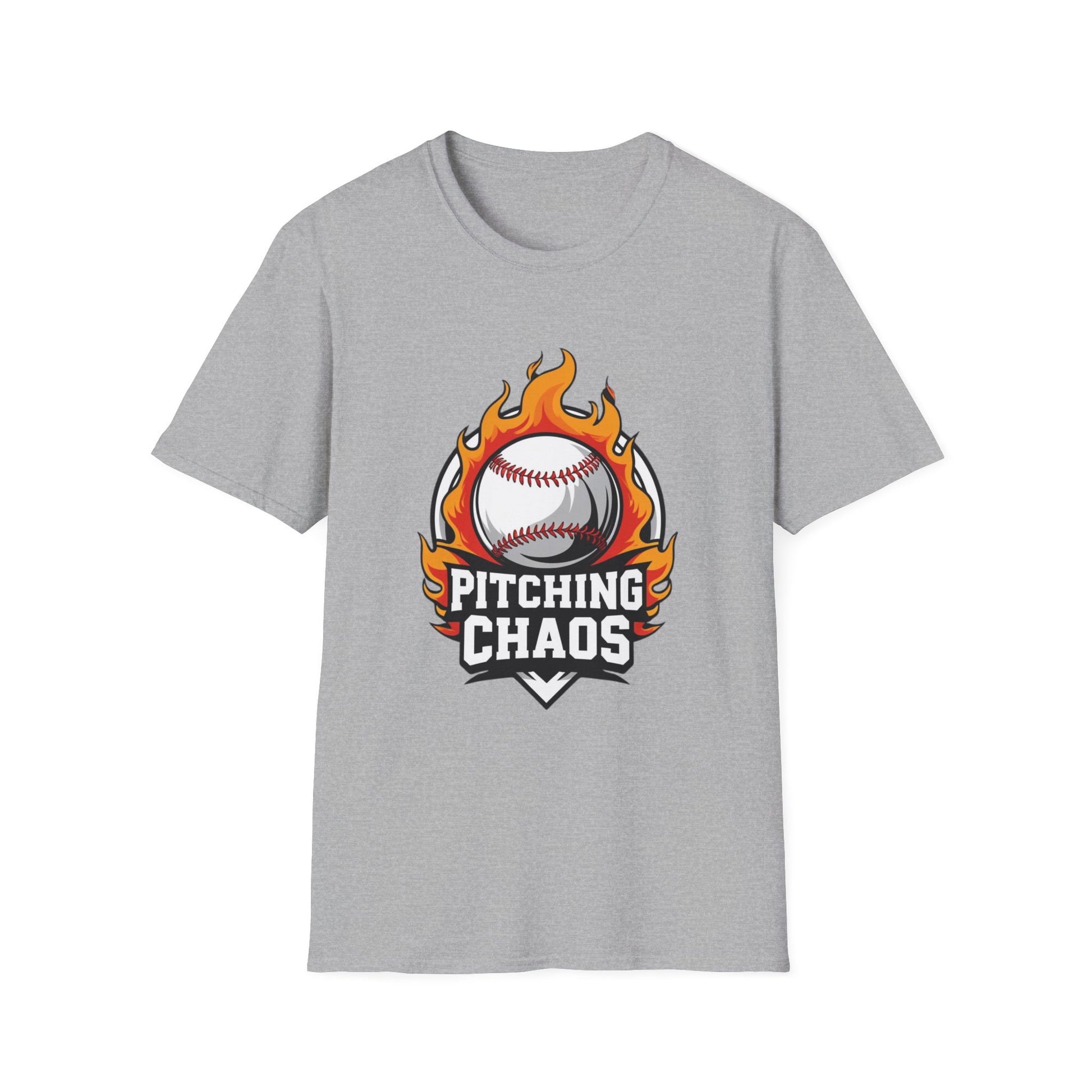 Pitching Chaos Baseball T-Shirt for Sports Enthusiasts